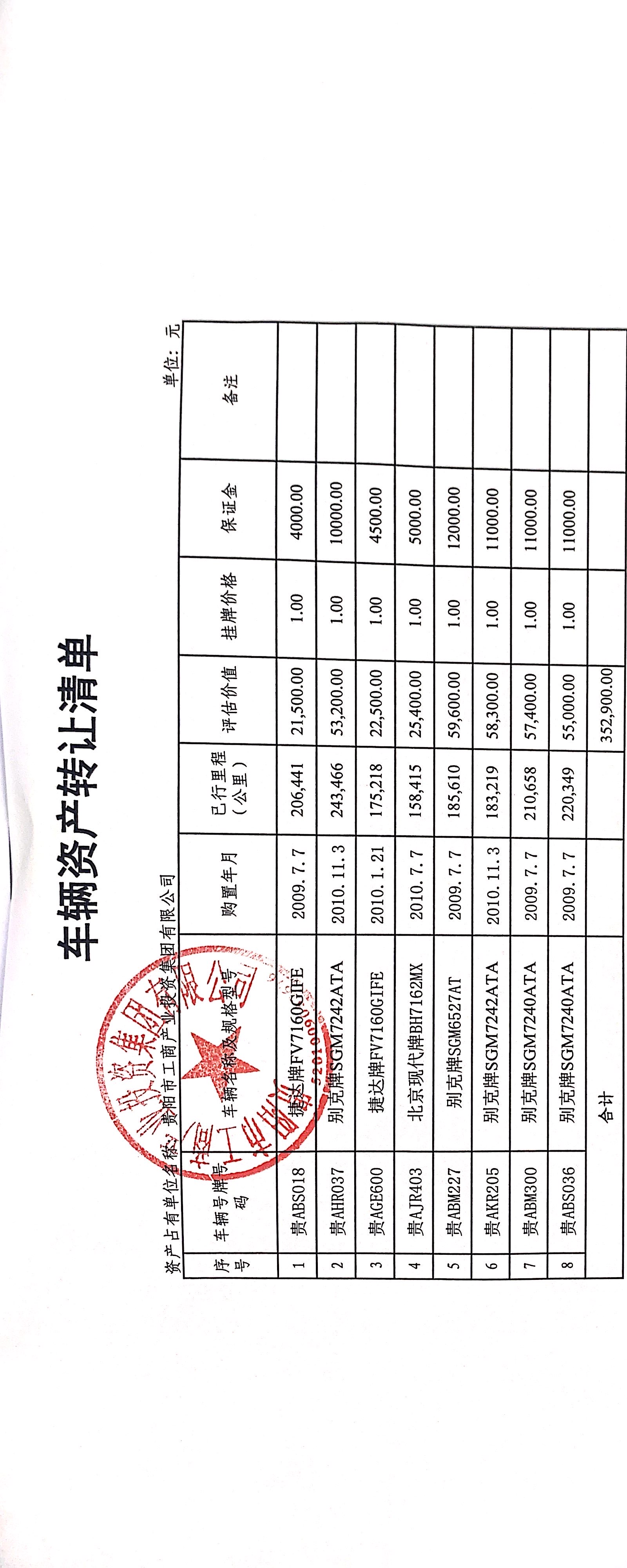 貴陽市工商產(chǎn)業(yè)投資集團(tuán)有限公司處置車輛一批(無底價)